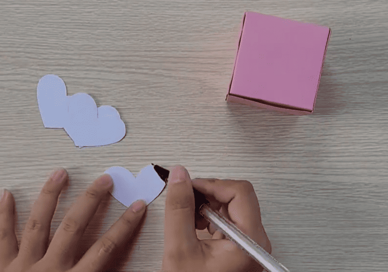 Bước 5: cắt các hình trái tim trắng nhỏ và trang trí bằng bút dạ
