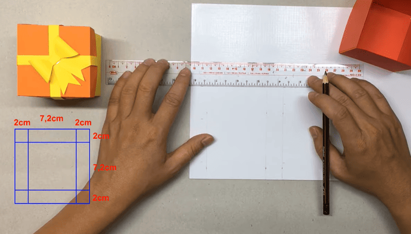 Bước 2: Cắt và gấp theo nếp để tạo thành khối hộp (đáy và nắp riêng).