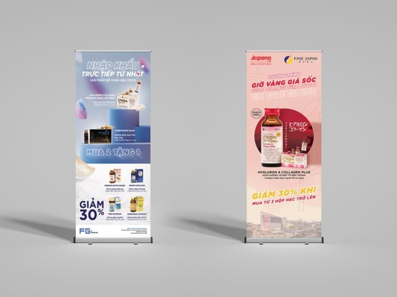 Poster banner: là sự kết hợp giữa poster và banner, thường có kích thước lớn hơn, phục vụ mục đích quảng bá sự kiện, thương hiệu hoặc sản phẩm.
